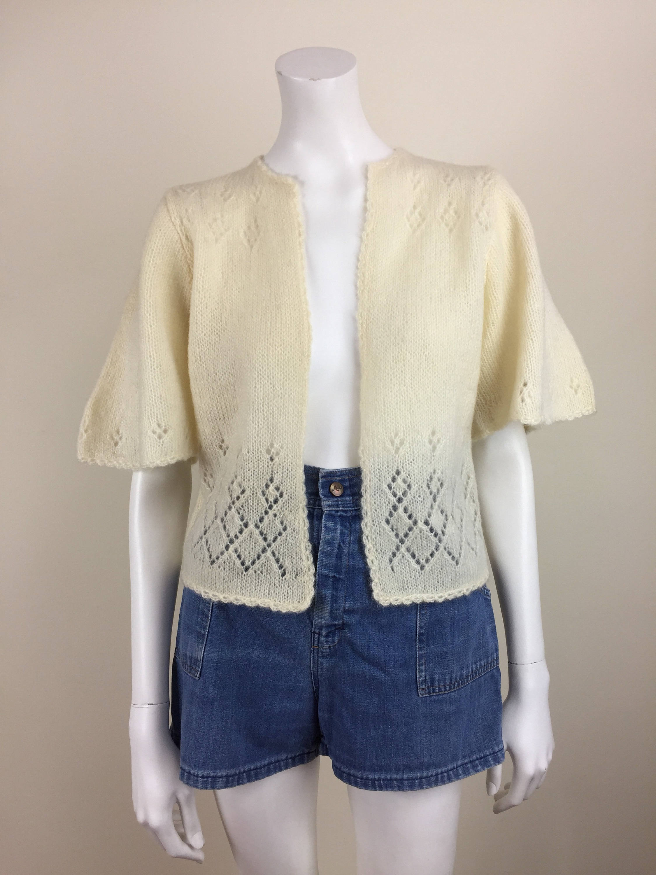 Vintage Ivory Handknit Wool Cardigan Sweater W Short Bell Etsy Canada