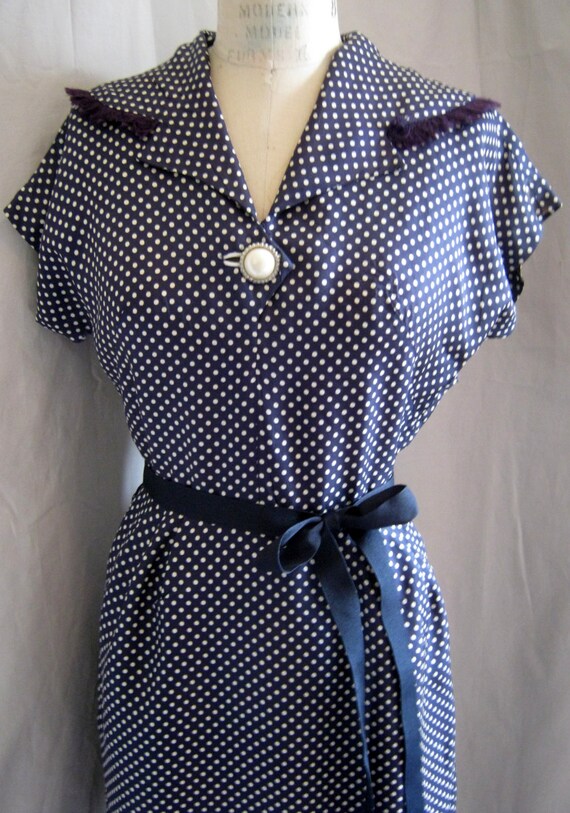 Vintage 50s Silky Polka Dot Sheath Dress Sexy Secretary Etsy Canada