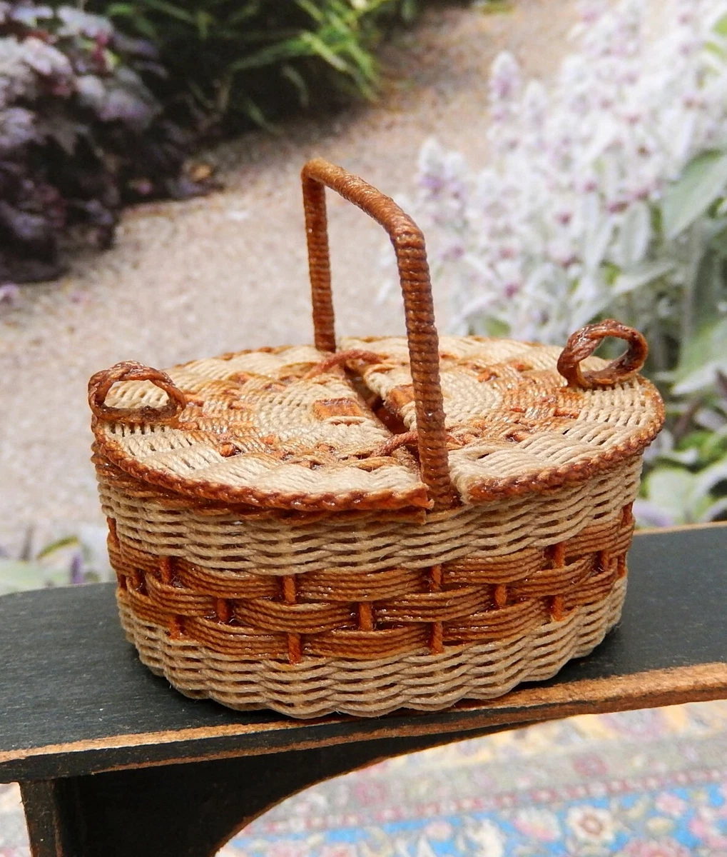 Vintage Joan Rankin Wicker Dual Lid Basket Artisan Dollhouse Miniature 1 12 Ebay